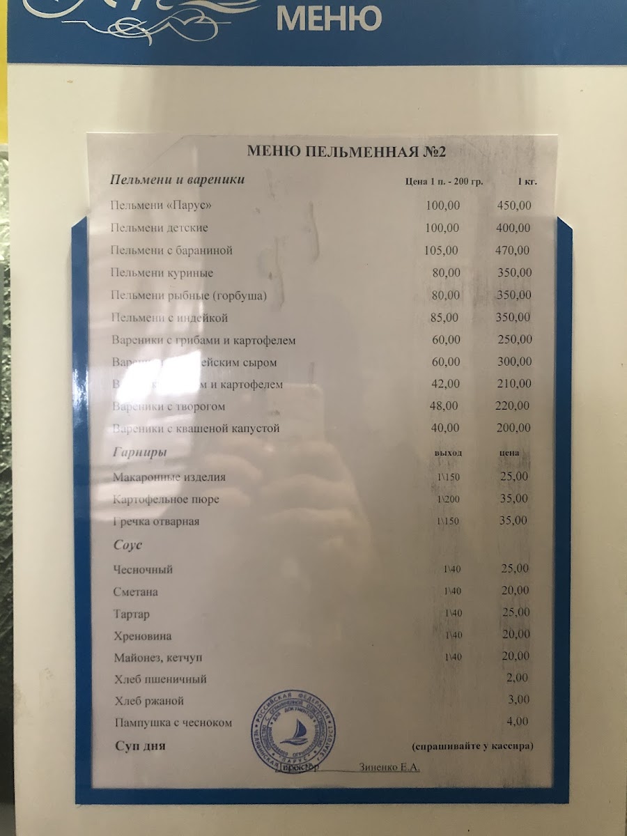 Pel'mennaya 2 Menu